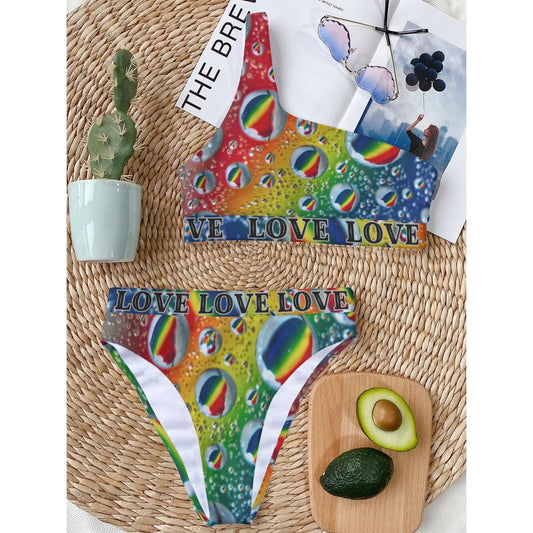 Multi Colour Print One Shoulder Bikini Set
