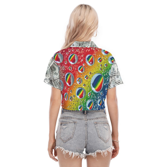 Multi Colour & Money Print Cropped T-Shirt