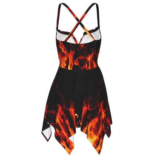 Flame Print Fishnet Sleeve Cropped Hoodie