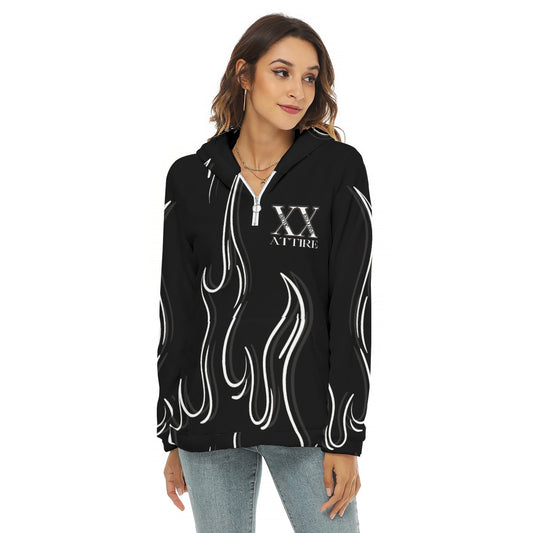 White Flame Fleece Hoodie with Mid Zip